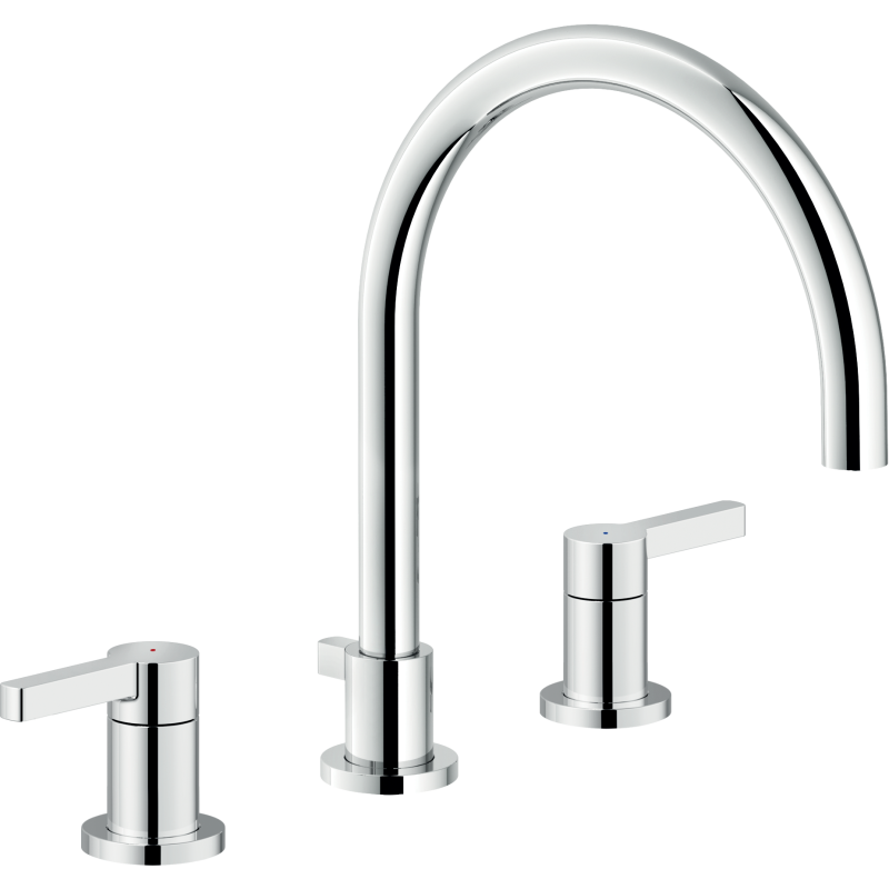 UNO THREE-HOLE BASIN MIXER WITH LONG SPOUT AND DRAIN