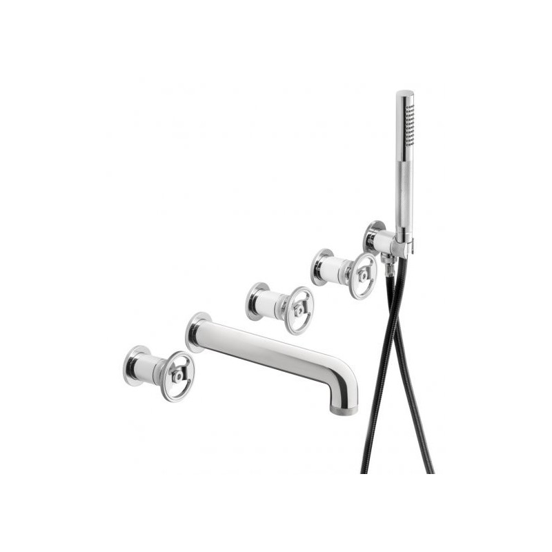 BOLD ROUND Wall-Mounted Bathtub Mixer with Five Holes, Diverter, and Shower Kit