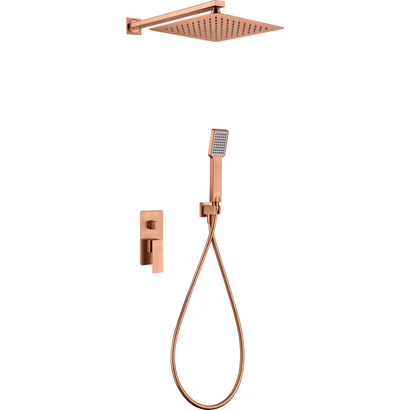 PISA MECHANICAL SINGLE-LEVER SHOWER KIT WITH DIVERTER + BRUSHED ROSE GOLD SHOWER HEAD AND HAND SHOWER