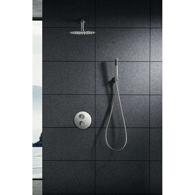 MOSCU SHOWER KIT SOFFIONE WITH 2-WAY THERMOSTATIC MIXER + HAND SHOWER STAINLESS STEEL S.316