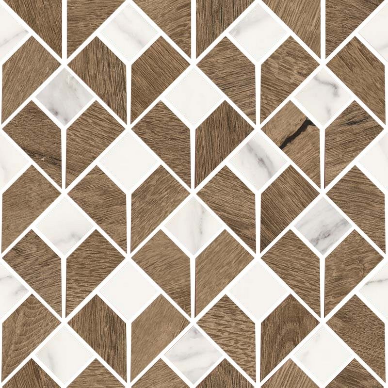 Three colors in natural tones plus two shades that reproduce painted, aged, or distressed woods. Mosaics dedicated to completing an evolved and eclectic collection.