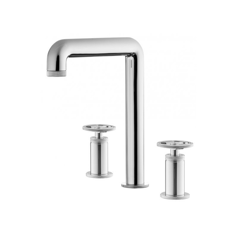 BOLD ROUND HIGH THREE-HOLE BASIN MIXER WITH CLICK-CLACK WASTE