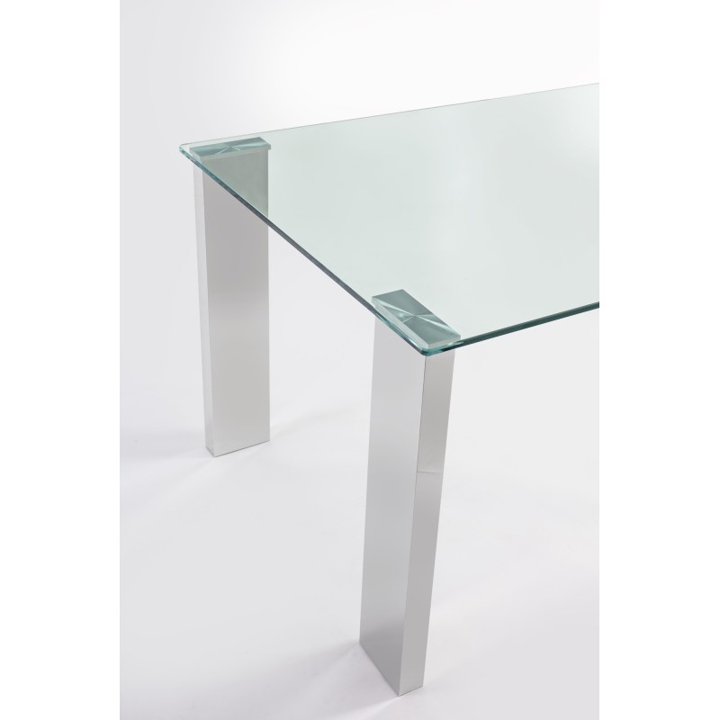 LEGS IN MDF COATED WITH SHINY STEEL LAMINATE THICKNESS 0.3MM. TOP IN TEMPERED GLASS THICKNESS 12MM. LEGS TO BE ASSEMBLED
