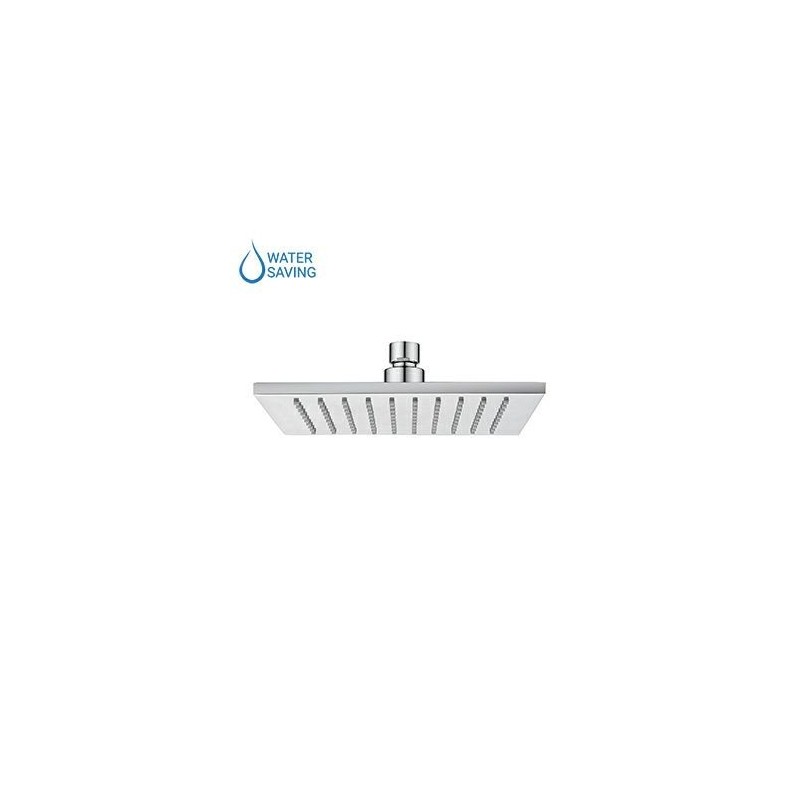 SOFFIONE 200x200 mm in brass, with a fixed jet, and anti-limescale system. Thickness 8 mm.