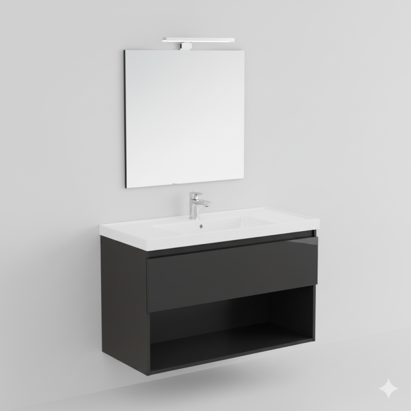 B-BEST COMPOSITION URANIUM GRAY FINISH - W. 100 CM D. 45.5 CM H. 58.5 CM - 1 DRAWER - COMPLETE WITH MIRROR AND SPOTLIGHT