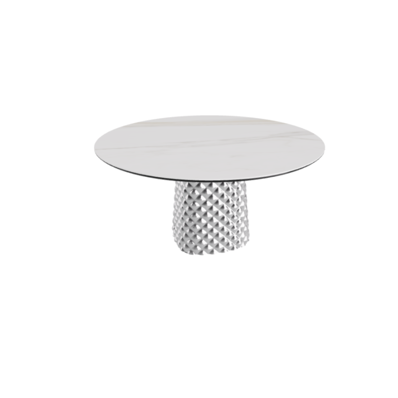 TABLE ATRIUM KERAMIK ROUND - SMOKY BASE TOP IN MATTE CALACATTA CERAMIC MARBLE Ø 140xh73.5