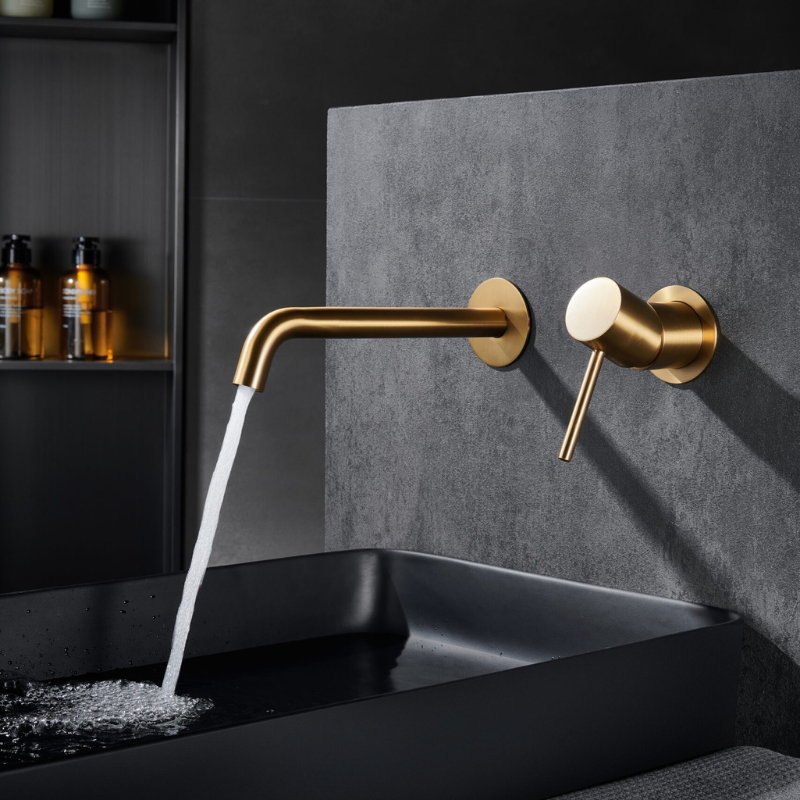 MONZA WALL-MOUNTED SINGLE-LEVER BASIN MIXER WITH BUILT-IN PART BRUSHED GOLD