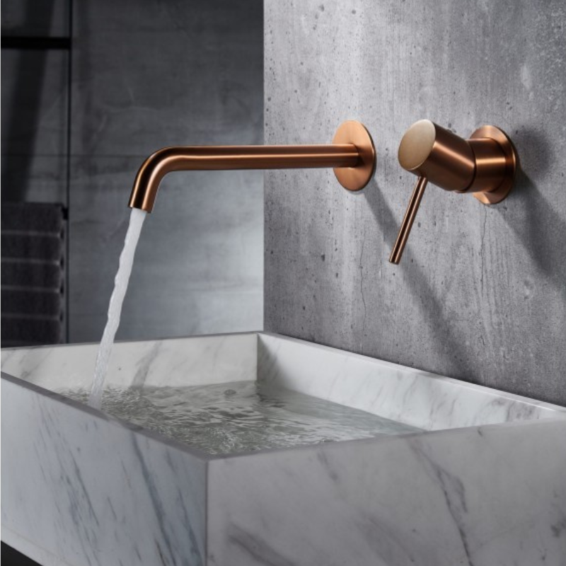 MONZA WALL-MOUNTED SINGLE-LEVER BASIN MIXER WITH BUILT-IN PART BRUSHED ROSE GOLD